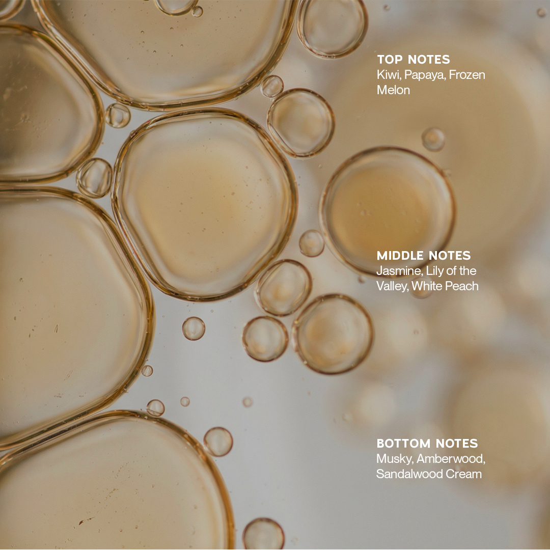 Top Notes (Kesan Pertama): Energi instan dari perpaduan buah tropis Kiwi, Papaya, dan sensasi dingin dari Frozen Melon. Kesegaran yang memberikan semangat di pagi hari.