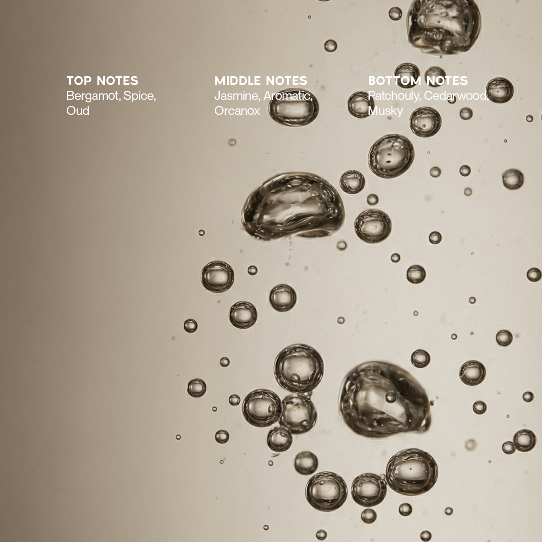 Middle Notes (Inti Aroma): Di bagian tengah, kelembutan Jasmine menyeimbangkan aroma rempah, berpadu dengan Aromatic notes dan Orcanox yang memberikan kedalaman aroma yang modern.